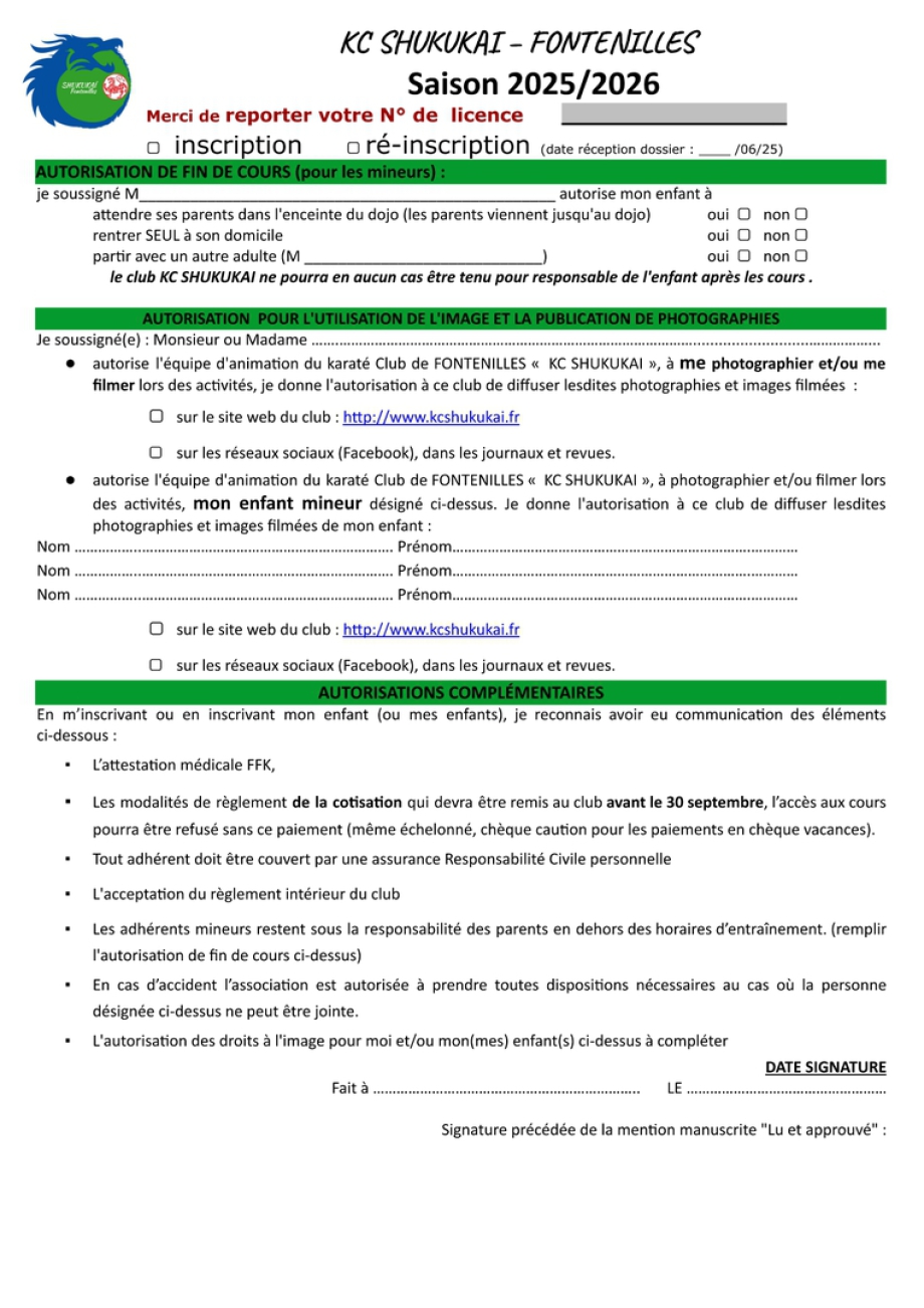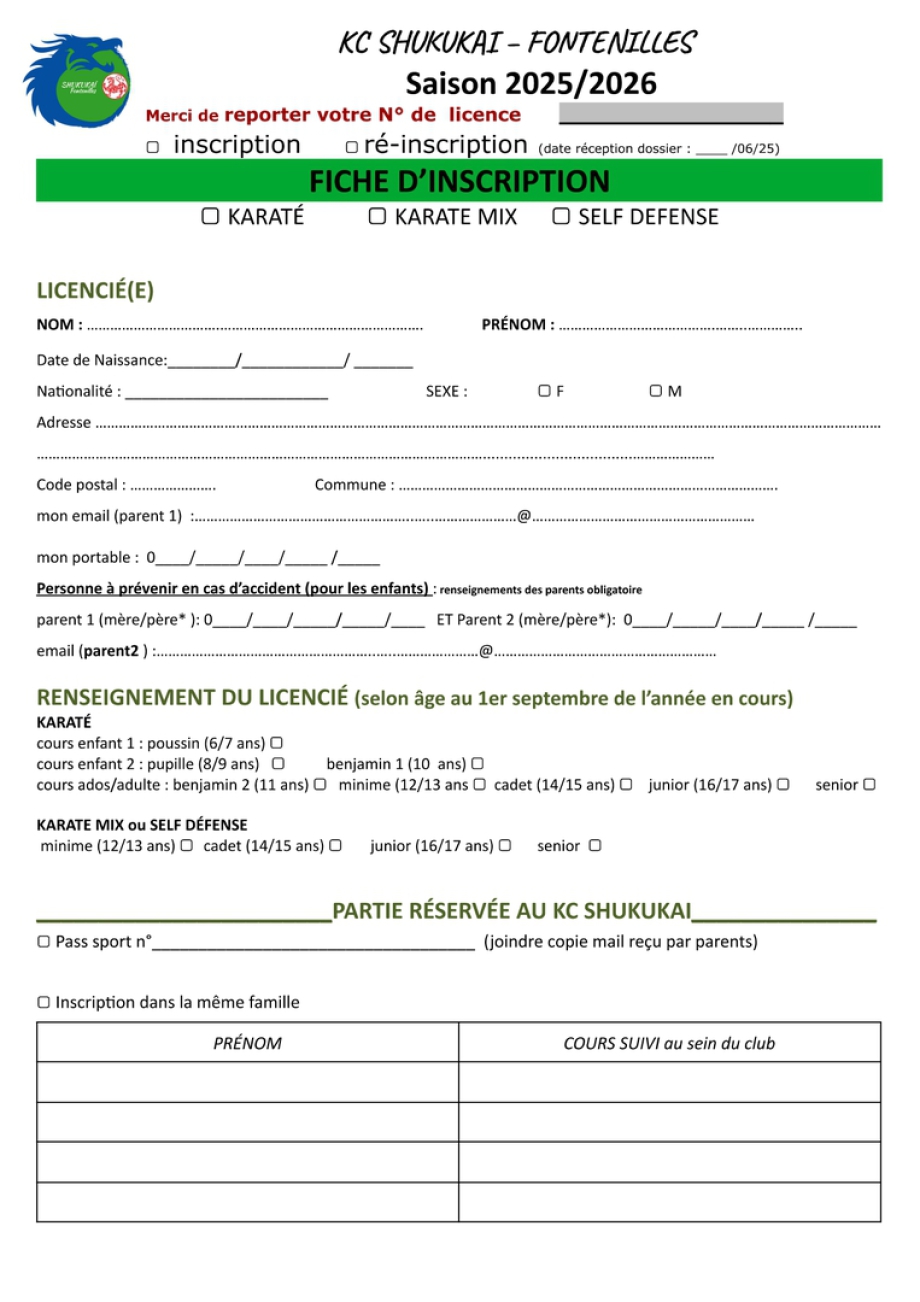 Vous avez ci-dessous la FICHE D’INSCRIPTION qui SERA A REMETTRE DANS TOUS LES CAS AVANT LE 30 SEPTEMBRE 2025